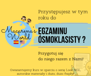 Twoje dziecko idzie do ósmej klasy? A może sam(a) jesteś na ostatniej prostej w podstawówce? Macarena’s World oferuje kurs języka angielskiego oparty na pracy z podręcznikami serii Look National Geographic Learning oraz autorskimi materiałami stworzonymi, tak by spełniały wymagania egzaminacyjne. Czy to brzmi jak opis każdego standardowego kursu podczas którego uczniowie posłusznie rozwiązują zadania siedząc […]